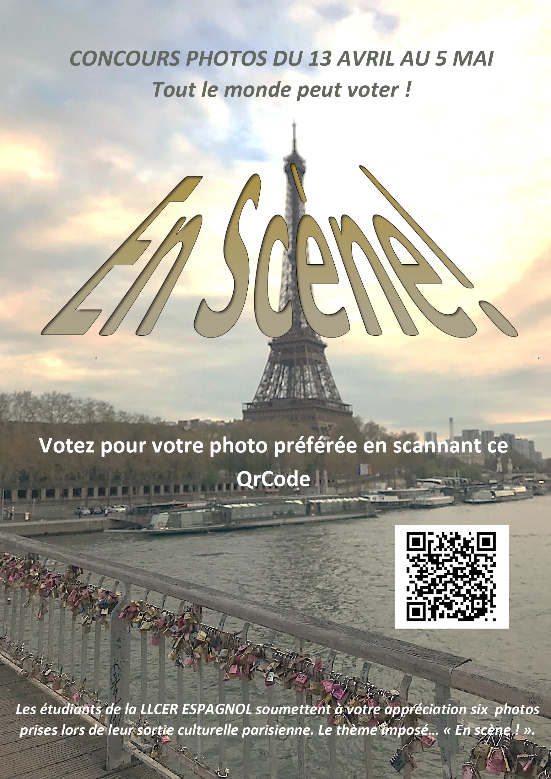 Exposition photo étudiante - En scène !Retour en images sur le voyage culturel à Paris des étudiants en espagnol. Exposition et concours photo autour du thème « En scène », du 27 avril au 5 mai à la Faculté Lettres, Langues, Sciences Humaines & Sociales..