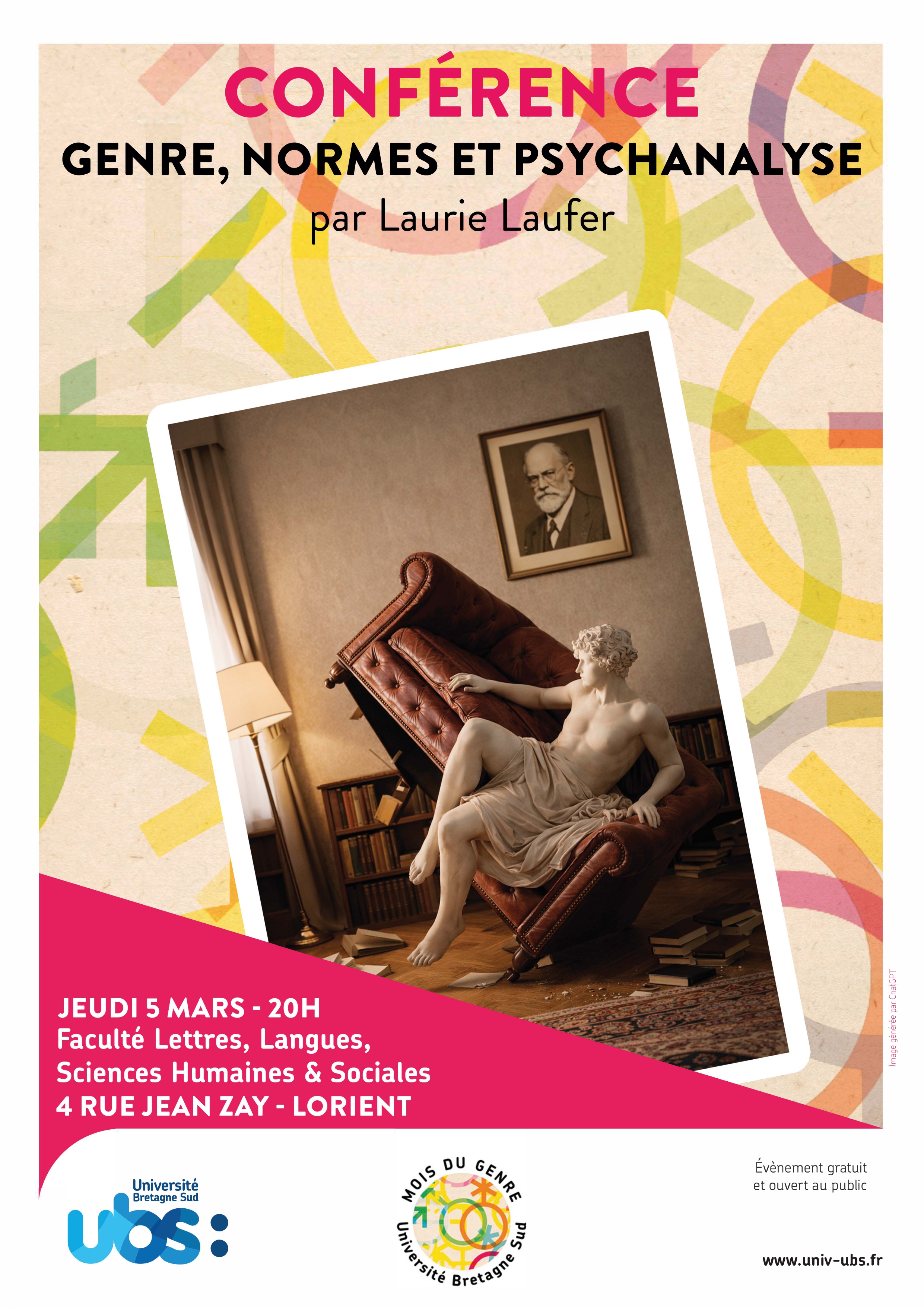 Le mois du genre - Conférence Genre, normes et psychanalyseRepenser le genre : Laurie Laufer questionnera normes et psychanalyse lors d’une conférence ouverte à toutes et tous. Le 5 mars à 20h, à l’Université Bretagne Sud.