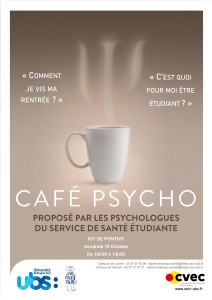 Café psychoLes psychologues du Service de Santé Etudiante proposent un Café Psycho à l'IUT de Pontivy pour échanger avec les étudiant·es sur leur rentrée le 10 octobre à Pontivy.