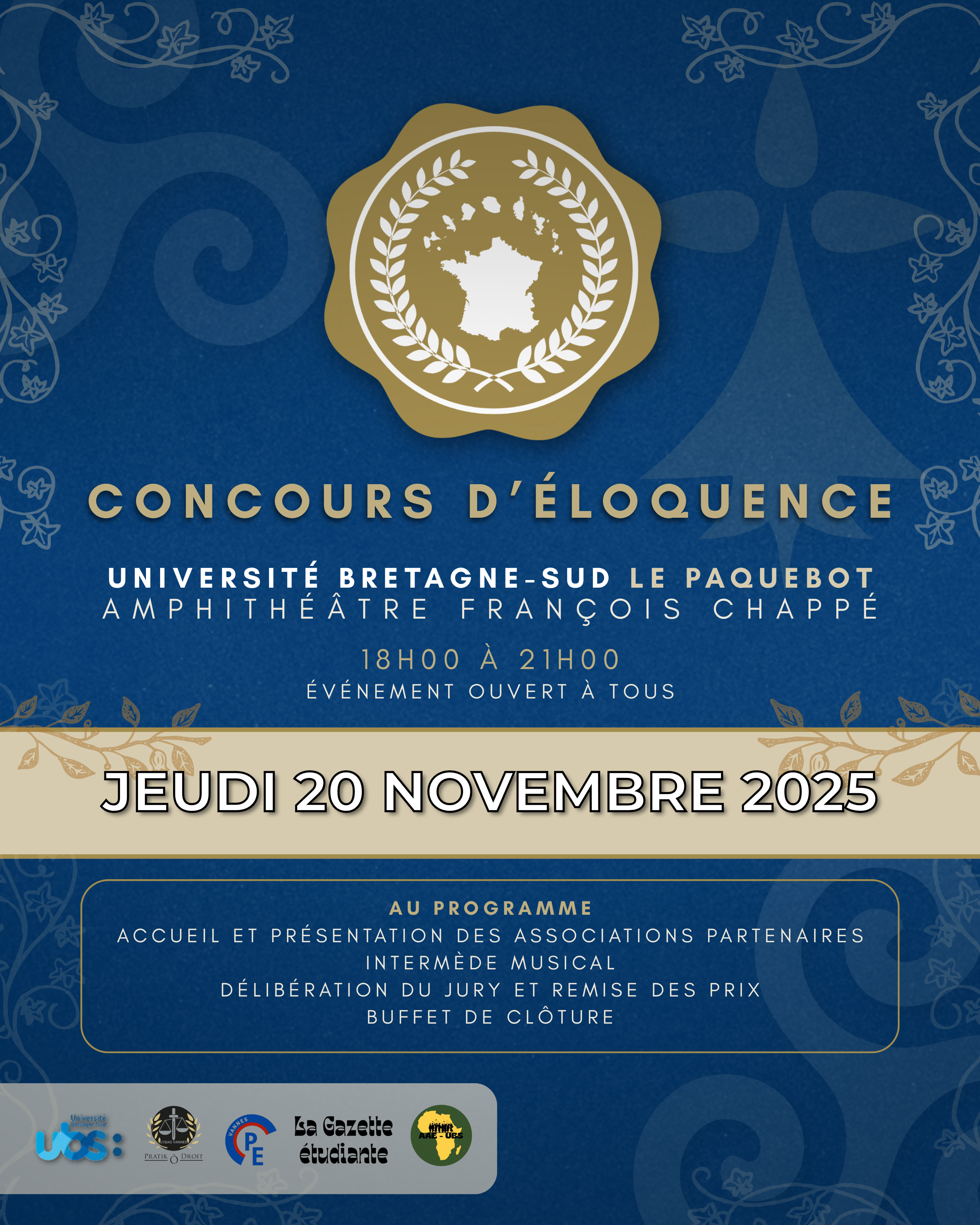 Concours d’éloquence - Beaux ParleursLe jeudi 20 novembre l’association Beaux Parleurs organise son premier concours d’éloquence de l’année universitaire au sein de l’Université Bretagne-Sud à Lorient.