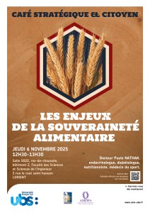 Café stratégique - Lorient - La souveraineté alimentaireLa conférence sera présentée par le Docteur Paule NATHAN, endocrinologue, diabétologue, nutritionniste, médecin du sport, le jeudi 6 novembre à 12h30 à Lorient.