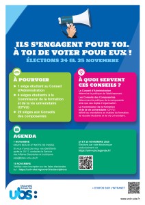 Élections : et si c’était toi qui faisais bouger l’UBS ?Les élections universitaires se tiendront les 24 novembre et 25 novembre. Étudiants, vous avez le pouvoir d’agir : candidatez avant le 5 novembre ou votez pour vos représentants !