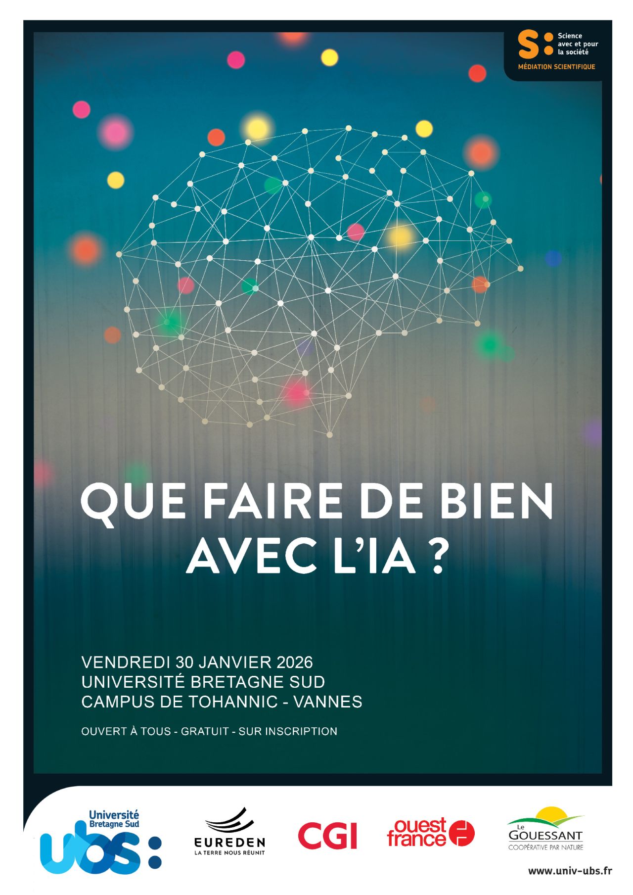Que faire de bien avec l’IA ?L’Université Bretagne Sud organise l'événement : “Que faire de bien avec l’IA ?”. Ouvert à toutes et tous, sur inscription, il se tiendra le vendredi 30 janvier 2026 sur son campus à Vannes.