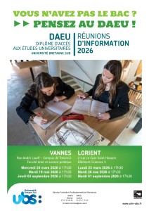Tout savoir sur le DAEU A et le DAEU BVous n'avez pas le Bac : pensez au DAEU ! Réunion d'information le lundi 23 mars à 17h30 à Lorient.