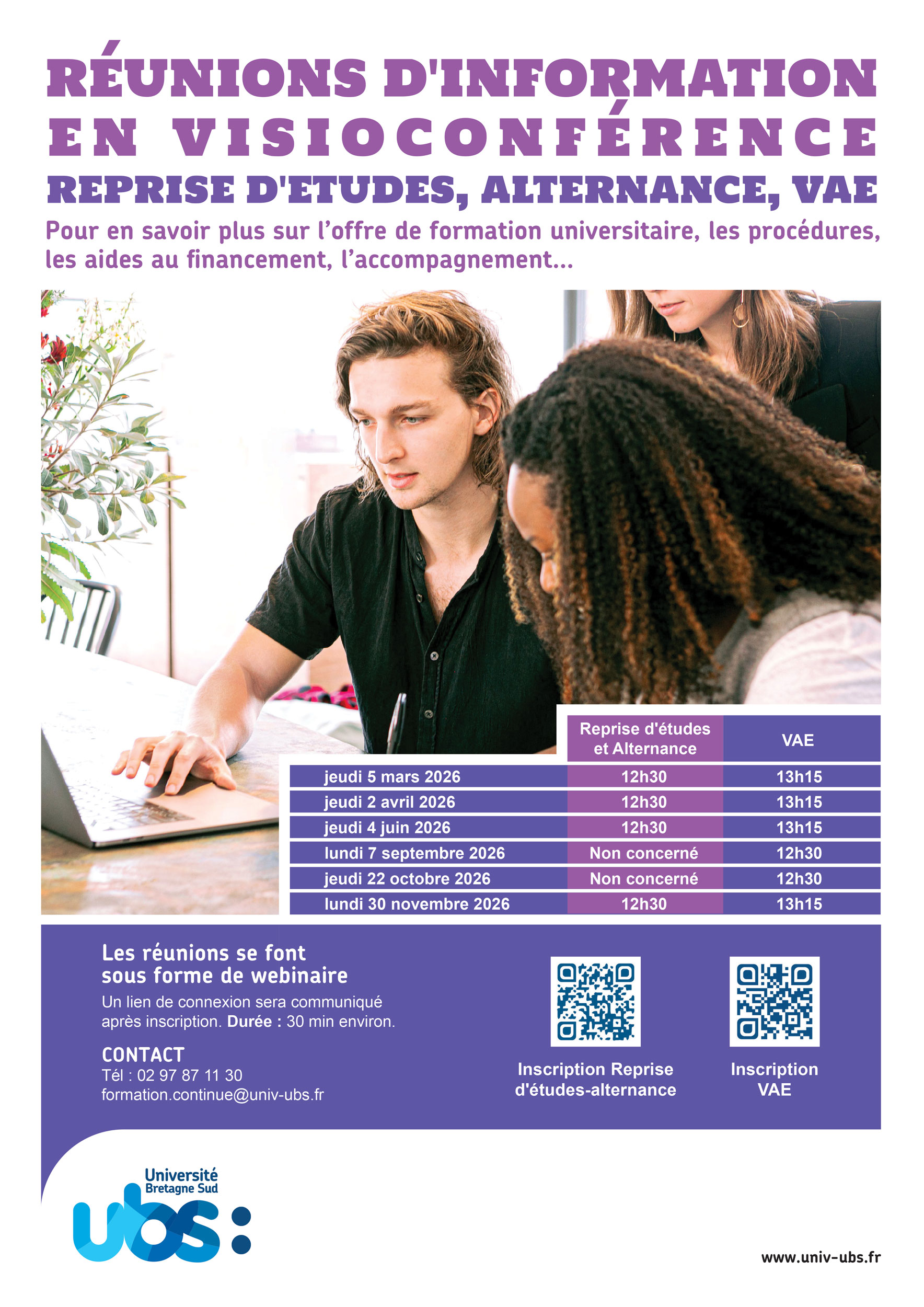 Webinaire sur la VAERéunion d'information en ligne, ouverte à tout adulte souhaitant valider ses acquis de l'expérience à l'UBS.